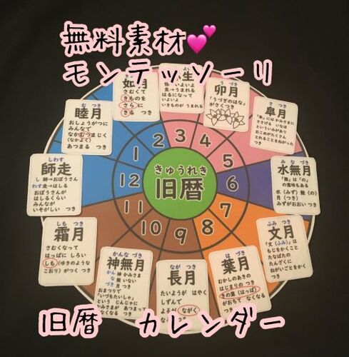 モンテッソーリ カレンダー♪旧暦カレンダー♬無料イラスト※無料の保育素材☆保育園・幼稚園・お家モンテッソーリなどにオススメ♬小学生にも!