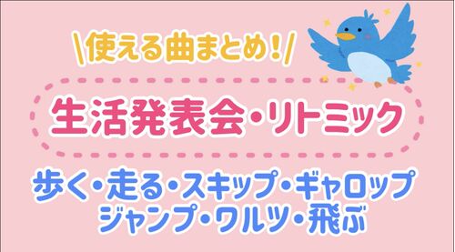 【生活発表会】登場曲や劇中にもおススメの基本動作の曲まとめ!歩く・走る・スキップ・ギャロップ・ワルツ・飛ぶ【リトミック】