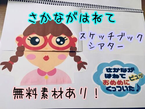 さかながはねて♪無料 スケッチブックシアター 素材(型紙)※保育園や幼稚園・介護施設にオススメ☆パネルシアターにも