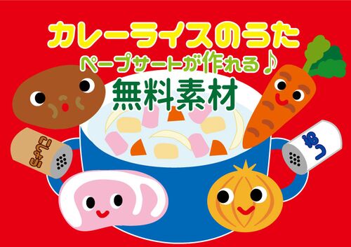 【カレーライスのうた】無料ペープサート イラスト素材♪保育園・幼稚園で人気の手遊び歌☆簡単・乳児さんから年長さんまで楽しめる☆保育実習・お泊り保育などイベントにもおススメ♪ 今日は保育園や幼稚園で定番の人気手遊び歌「カレーライスのうた」のペープ…