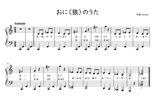 鬼(おおかみ)の歌※保育園・幼稚園のリトミック(身体表現)や劇遊び(生活発表会)で使える無料楽譜。桃太郎・赤ずきん・オオカミと七匹の子ヤギ・節分にも